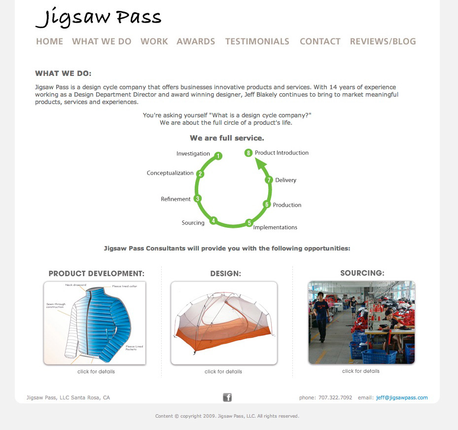 I was hired by the owner of Jigsaw Pass to design a clean, simple but tasteful site. To liven things up we did a brief Flash animation to add some color and movement.