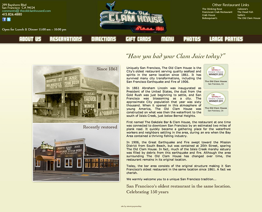 I was hired by the owners of The Old Clam House to design a new site for the recently restored restaurant.