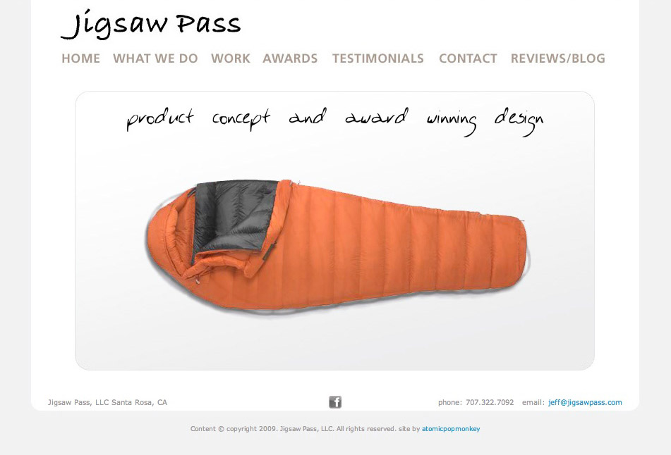 I was hired by the owner of Jigsaw Pass to design a clean, simple but tasteful site. To liven things up we did a brief Flash animation to add some color and movement.